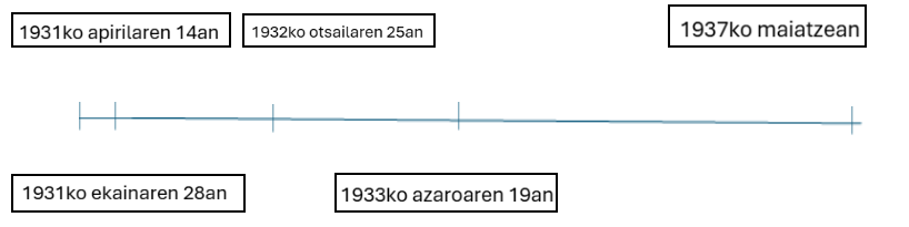 Podcasta berriro erreproduzituko da, eta ikasleek bertan jasotako informazioa identifikatu beharko dute. Zehazki, aldaketak zein egunetan egin ziren adierazi eta hurrengo denbora-lerroan kokatu beharko dituzte.