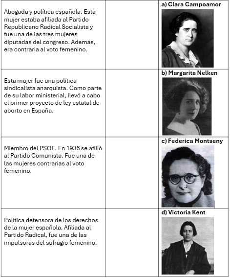 Relaciona las descripciones que hay en los recuadros con las imágenes de las mujeres que se mencionan en el podcast: